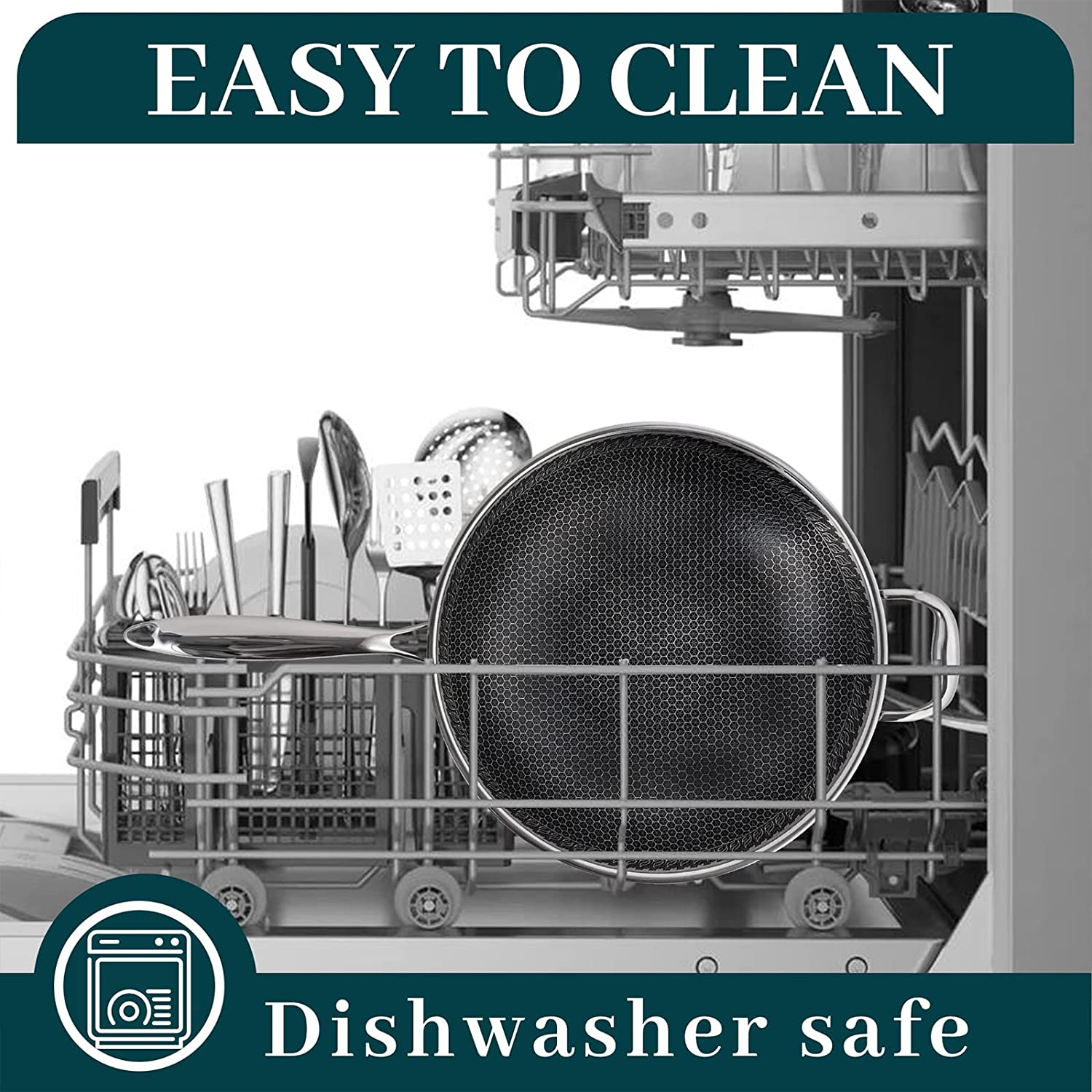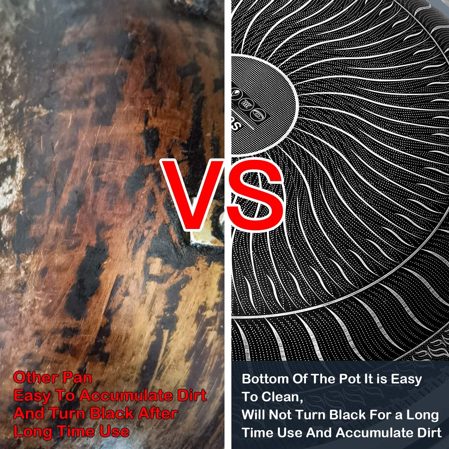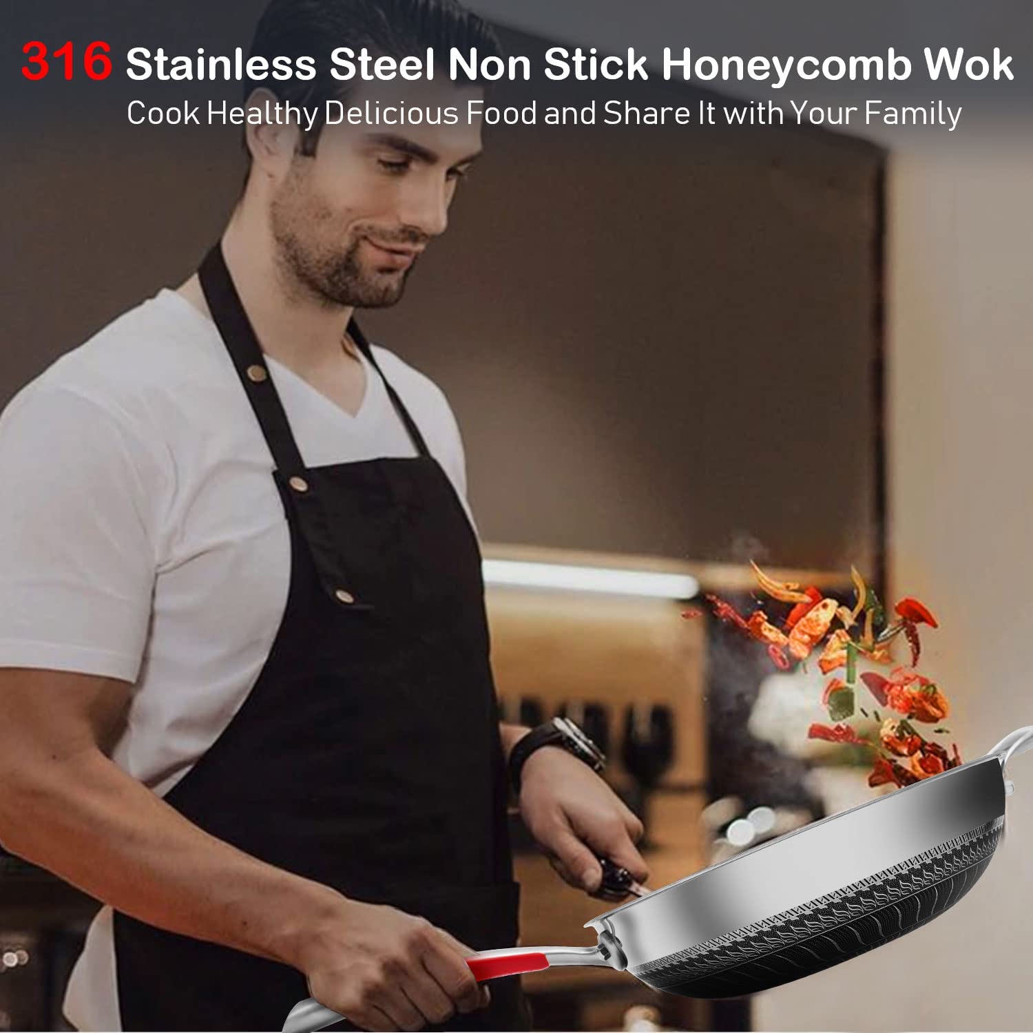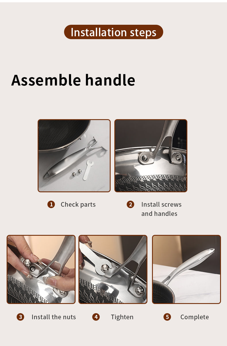 Material Composition: Newly Upgraded 316 Stainless Steel Wok Is Healthier, Multi-Layer Composite Special Process, Double-Sided Honeycomb Wok Pan, Fine Photo Etching Crystal Grain, High-Density Crystal Grain Improves Physical Non-Stick Performance.