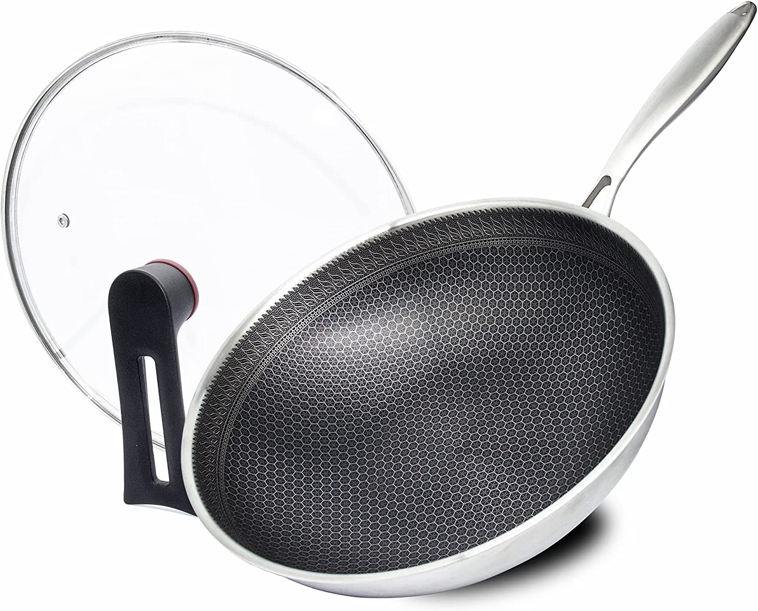 Kotilux Stainless Steel Non-Stick Honeycomb Wok with Lid, 32cm